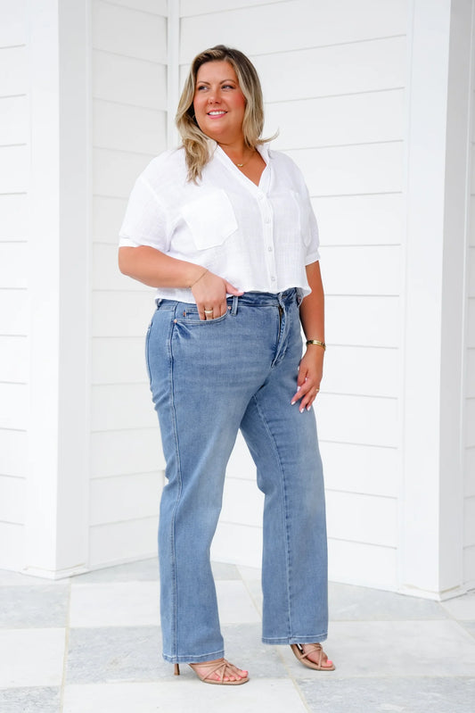 Mid Rise Straight Leg Jeans